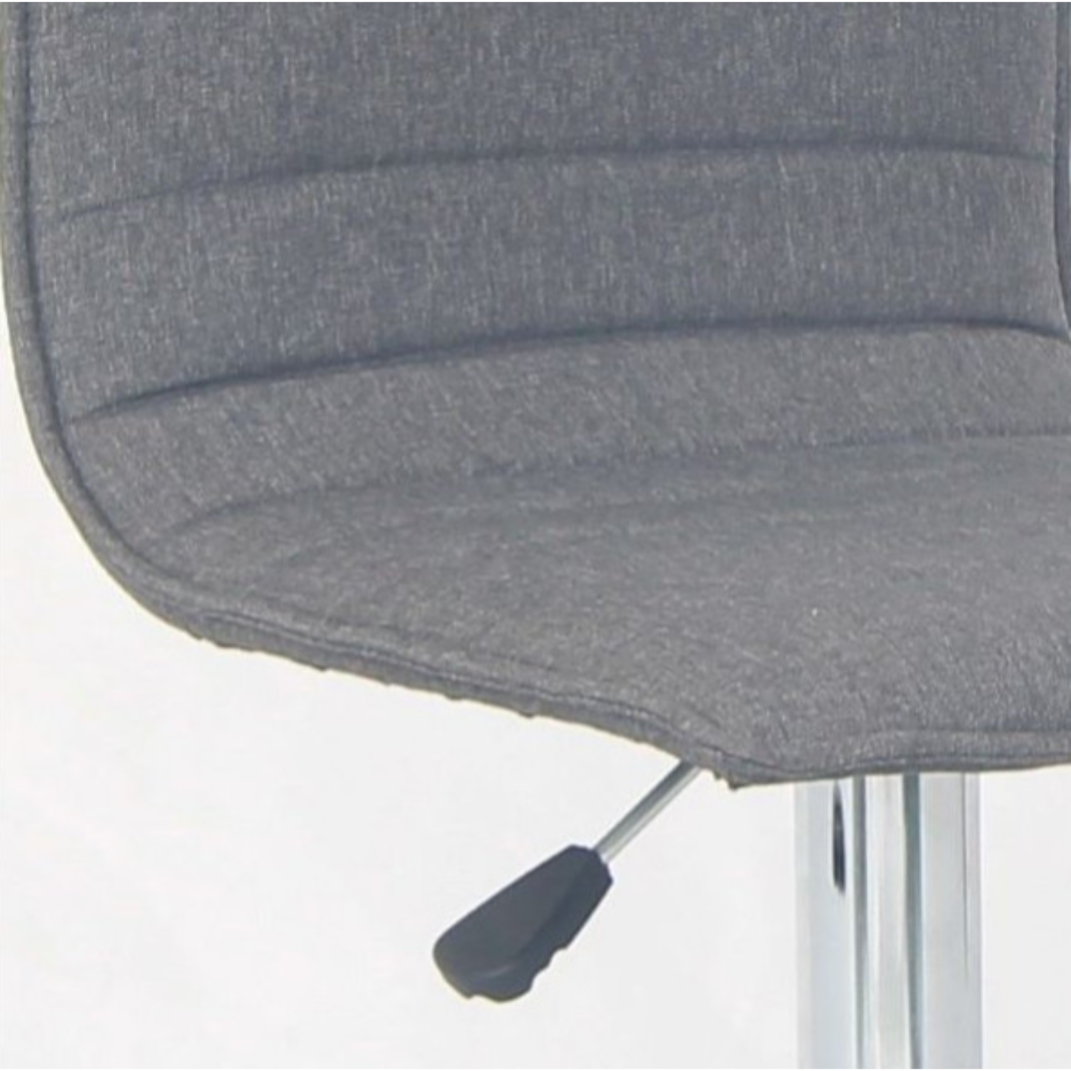 Sjedište je tapacirano kvalitetnom sivom tkaninom koja pruža mekoću, udobnost i otpornost na habanje, dok je baza izrađena od kromiranog metala za stabilnost i dugotrajnost. Stolica ima podesivu visinu sjedišta zahvaljujući praktičnom mehanizmu, kao i oslonac za noge za dodatni komfor. Njena siva boja i moderni minimalizam čine je lako uklopivom u različite stilove uređenja prostora.