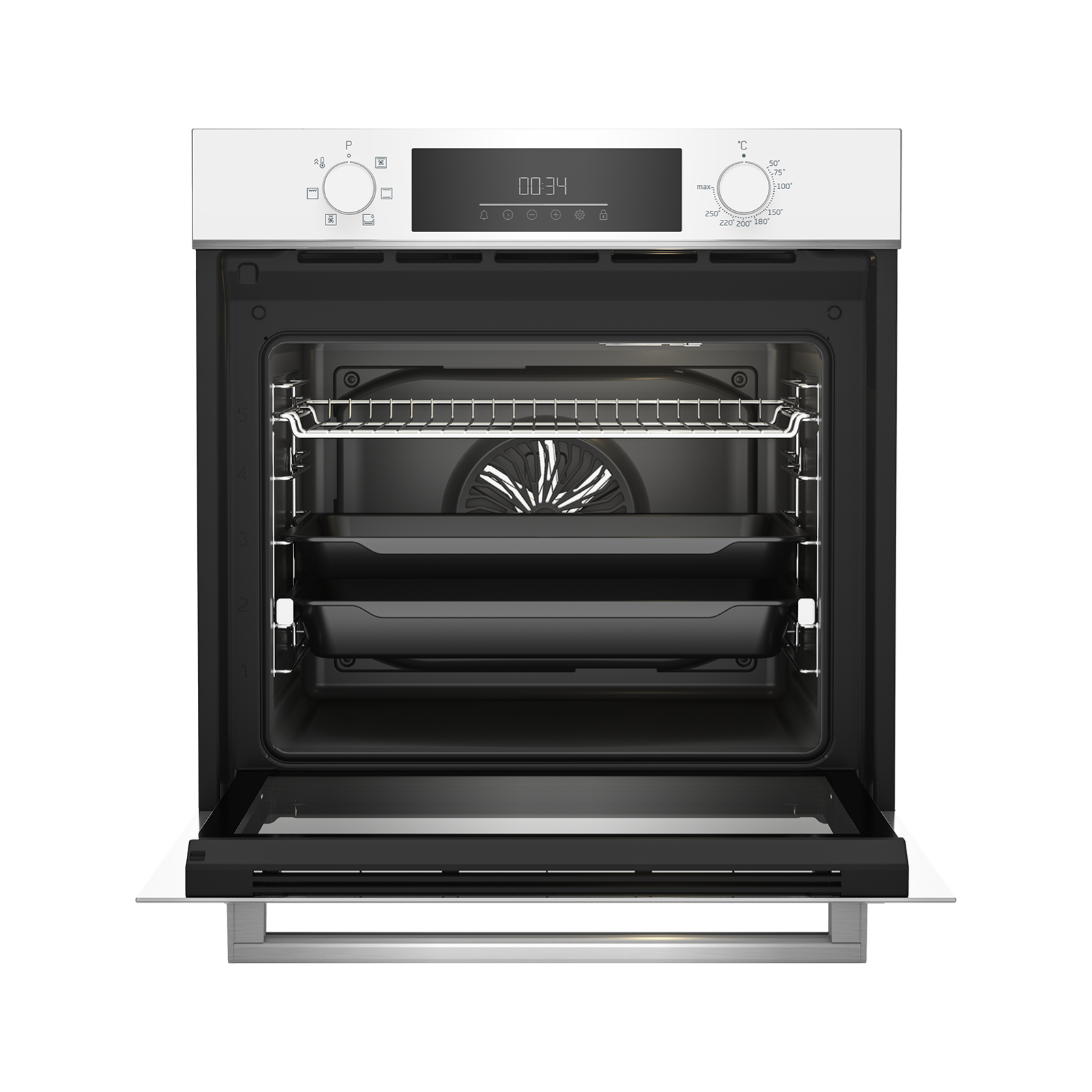 Beko BBIE18300W ventilatorska ugradbena pećnica modernog dizajna u bijeloj boji idealna je za savremene kuhinje. Velika zapremina od 72 litra omogućava pripremu većih obroka, dok ventilatorski sistem grijanja osigurava ravnomjernu raspodjelu toplote i odlične rezultate pečenja na svim nivoima.