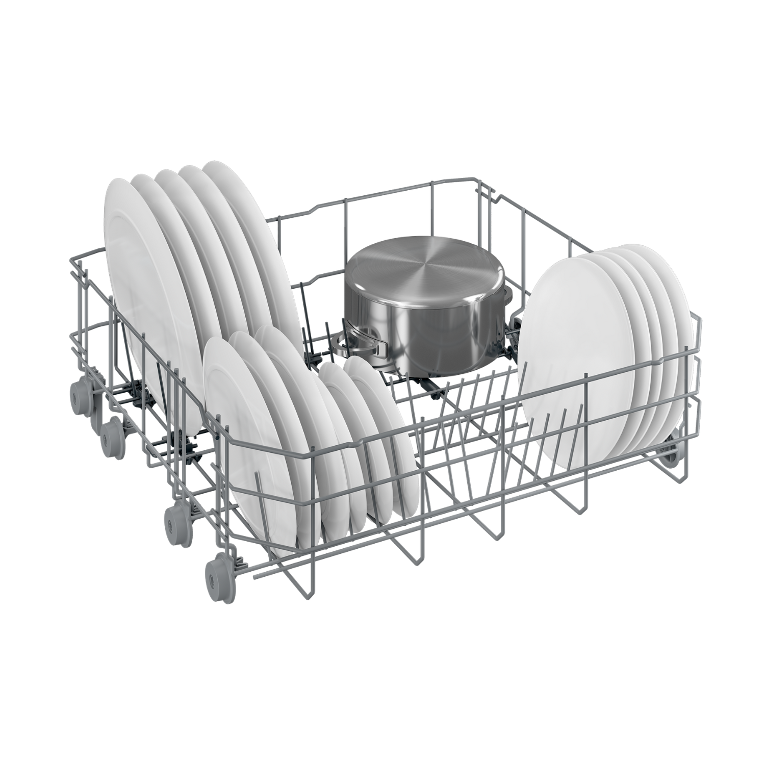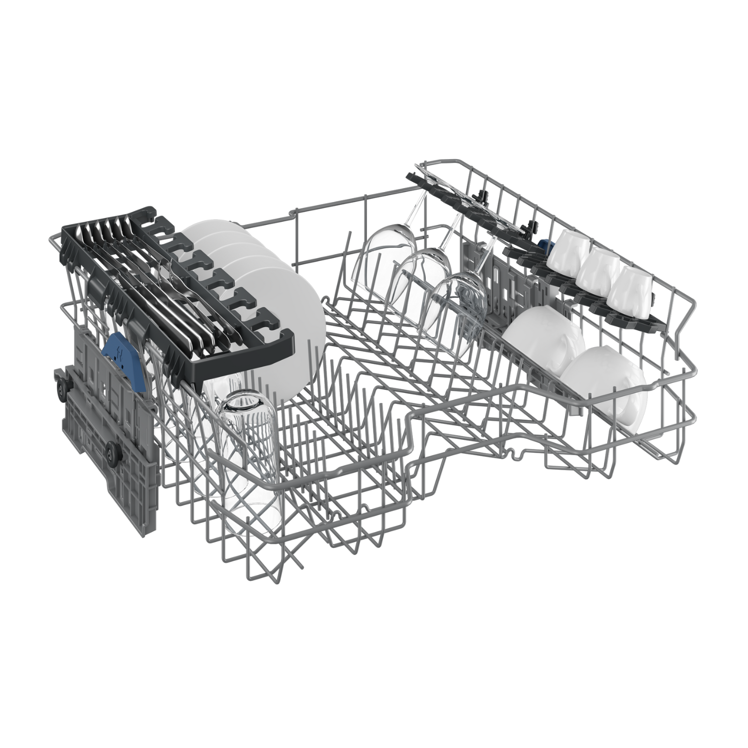 Klizna košara za pribor pruža više prostora za veće lonce i tave, dok SteamGloss® tehnologija osigurava kristalno sjajno posuđe bez vodenih tragova.