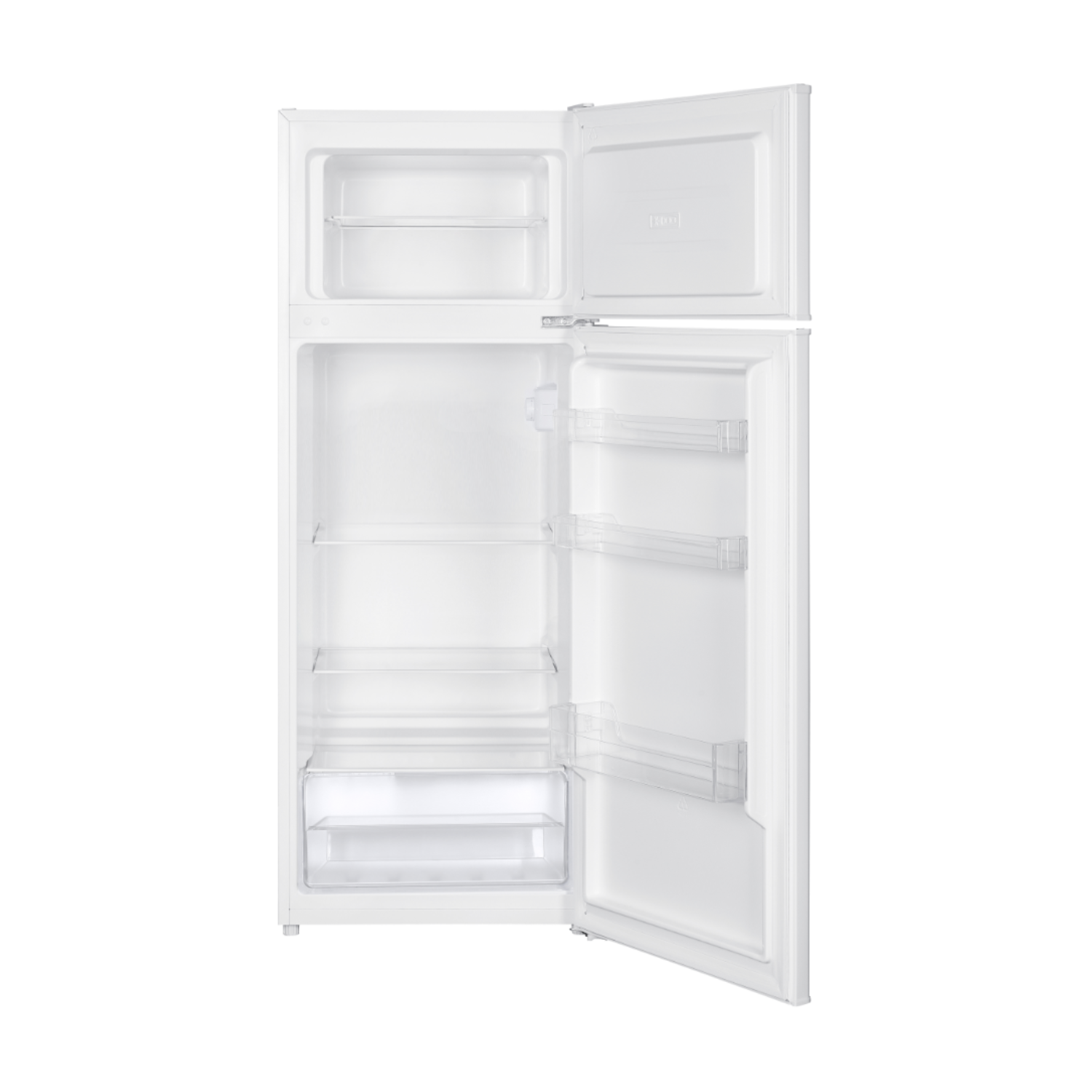 Ovaj model kombinuje funkcionalnost i kompaktnost – dimenzija je 54,5 × 143 × 55,5 cm (š × v × d). Frižiderski dio nudi 3 staklene police, ladicu za povrće i dodatne police na vratima, dok zamrzivač kapaciteta 37 L omogućava osnovno skladištenje zamrznute hrane.