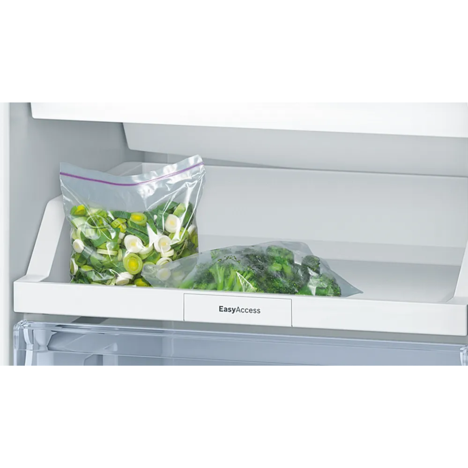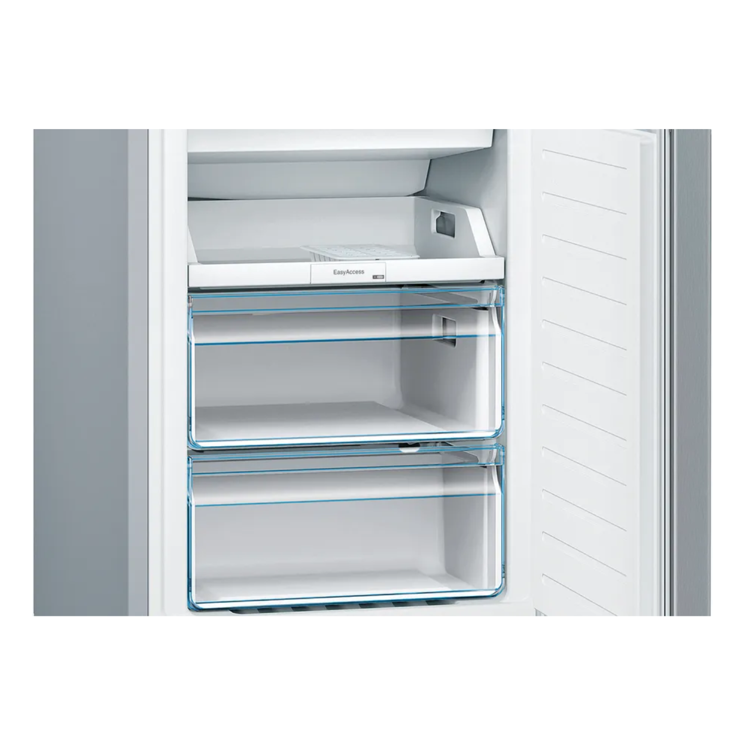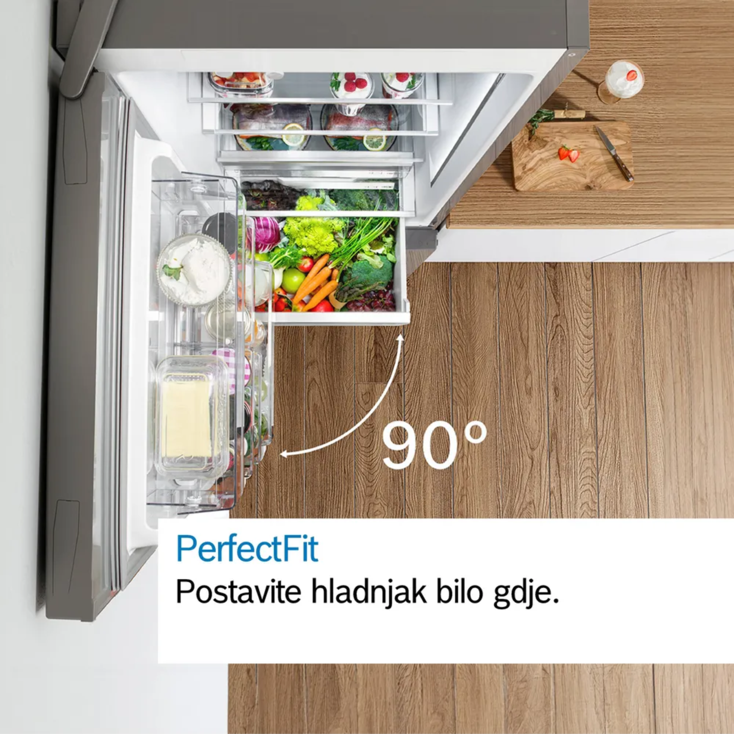 Model KGN36NLEA ima dimenzije 186 × 60 × 66 cm i predstavlja elegantan spoj izgleda i funkcionalnosti. Sa rashladnim dijelom od 216 L i zamrzivačem od 89 L, pruža obilje prostora za pohranu. Total NoFrost sistem pokriva oba dijela — sprječava nakupljanje leda u zamrzivaču i mraz u frižideru.