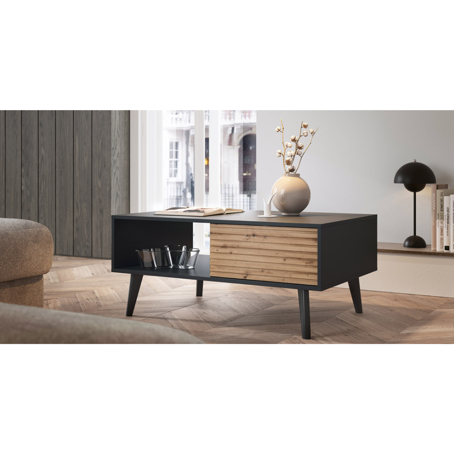 Dnevna soba Willow donosi savršenu kombinaciju industrijskog stila, modernog dizajna i funkcionalnosti. Spoj dekora artisan hrast i crne boje daje prostoru toplinu i eleganciju, dok visoke noge unose vizualnu lakoću. Idealna za savremene dnevne boravke!