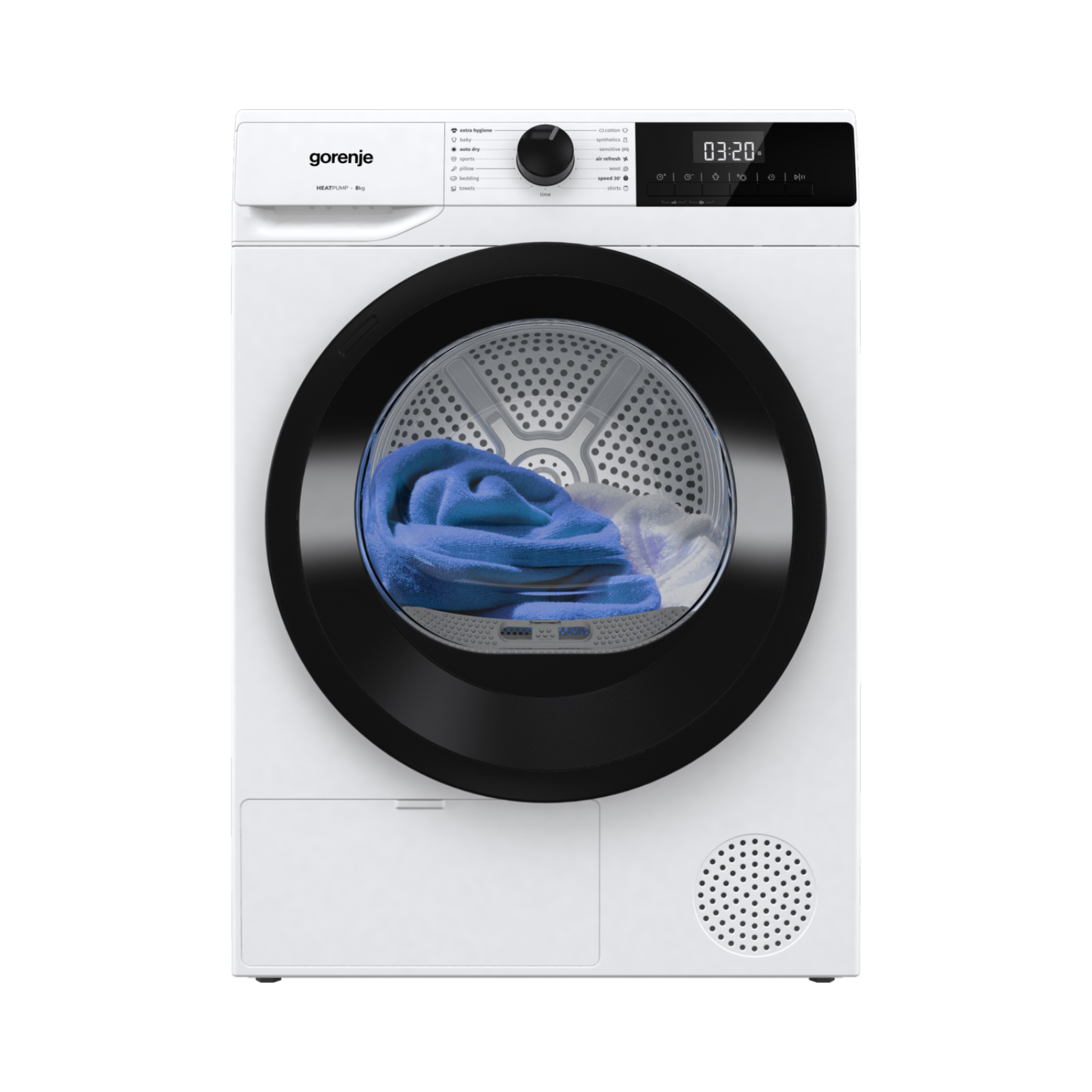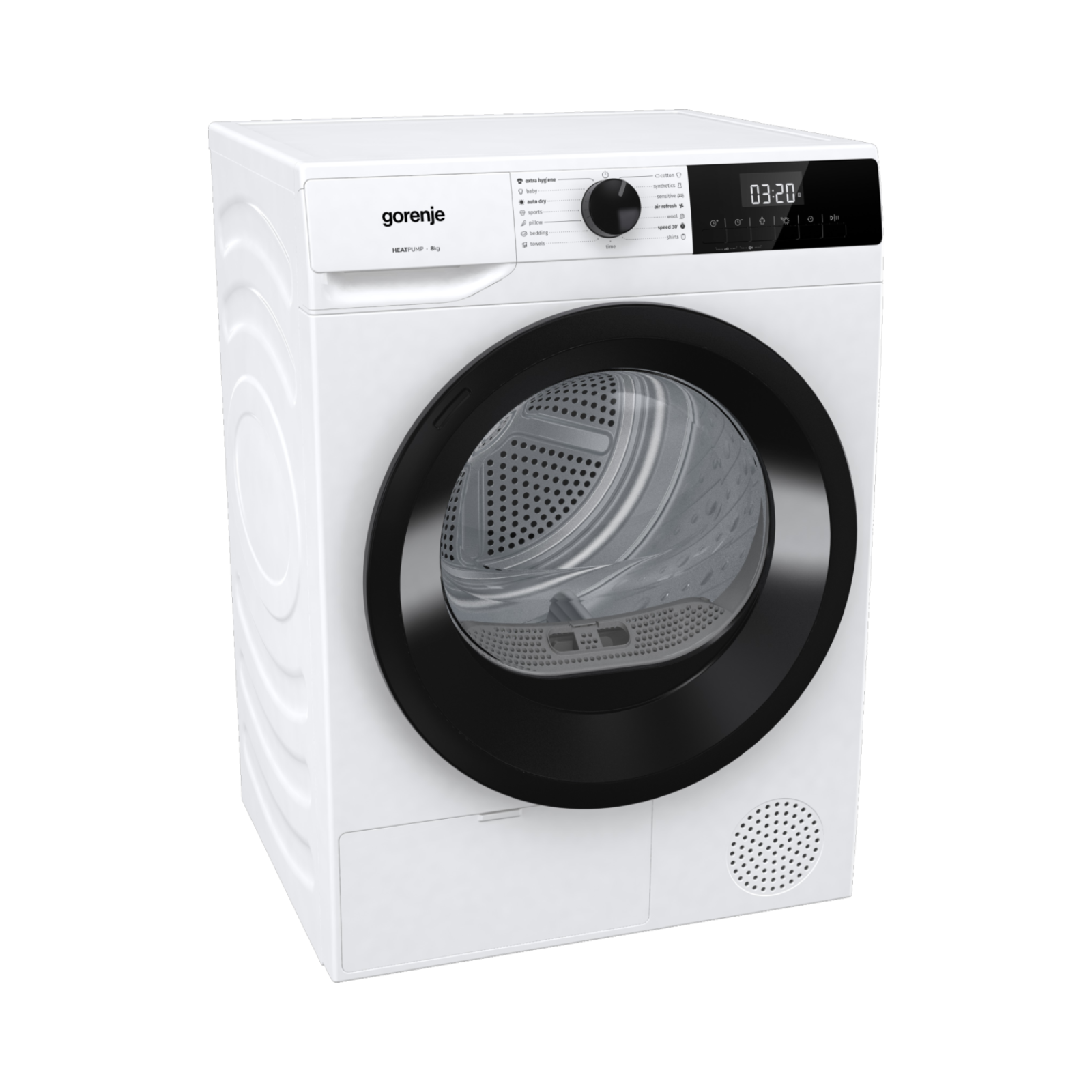 Kapacitet od 8 kg omogućava sušenje većih količina veša, dok senzori vlage automatski prilagođavaju trajanje sušenja kako bi se postigli optimalni rezultati bez nepotrebne potrošnje energije. Funkcija AntiCrease smanjuje gužvanje odjeće, a brzi program Speed 30’ omogućava osvježavanje manjih količina rublja za samo 30 minuta.