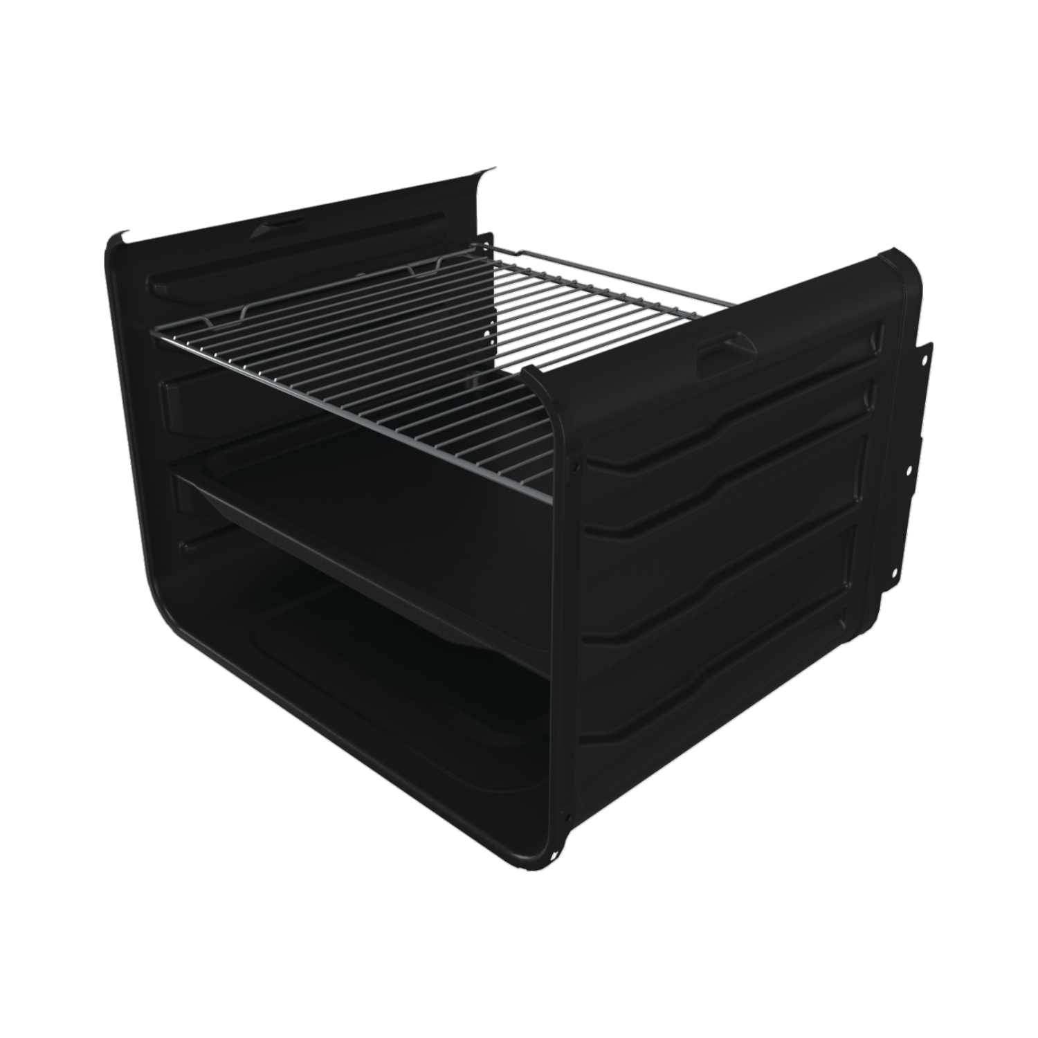 Oprema: 1 duboka emajlirana posuda za pečenje, 1 rešetka, Rebraste vodilice