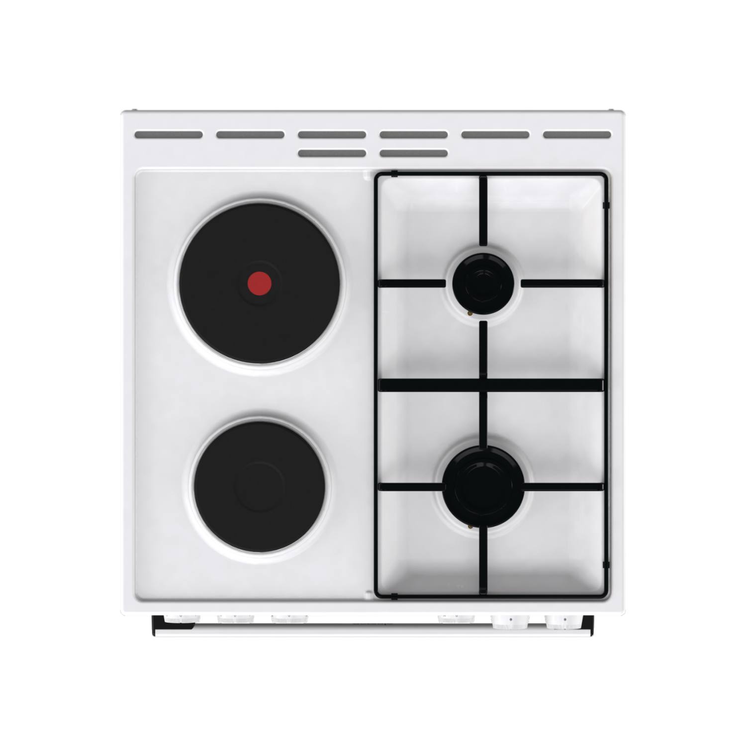 Samostojeći kombinirani štednjak širine 60 cm sa 2 plinska i 2 električna kola za kuhanje i rernom zapremine 65 l u energetskom razredu A. Opremljen je praktičnom funkcijom AquaClean i inovativnim HomeMade oblikom rerne za ravnomjerno pečenje.