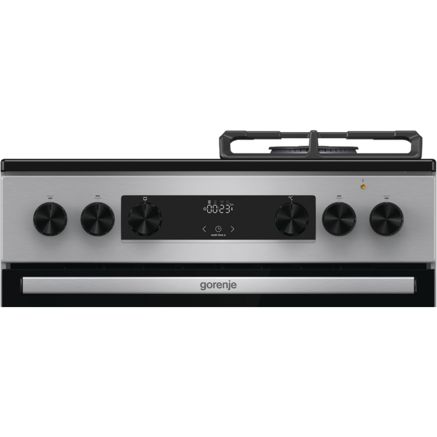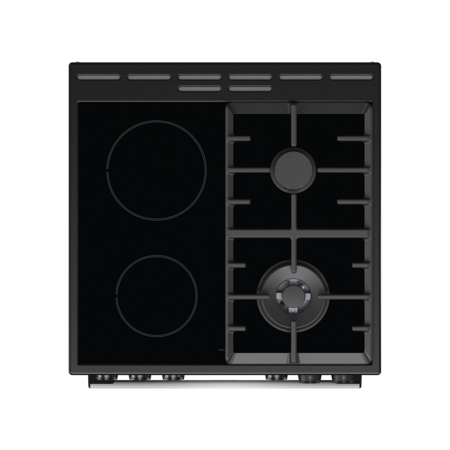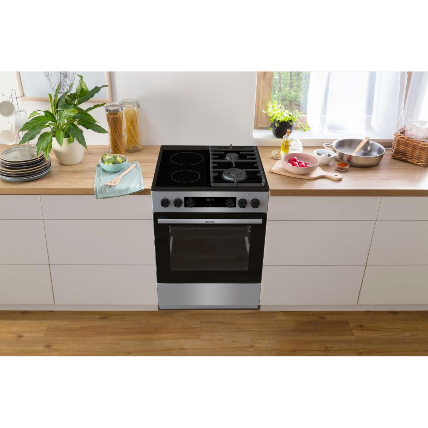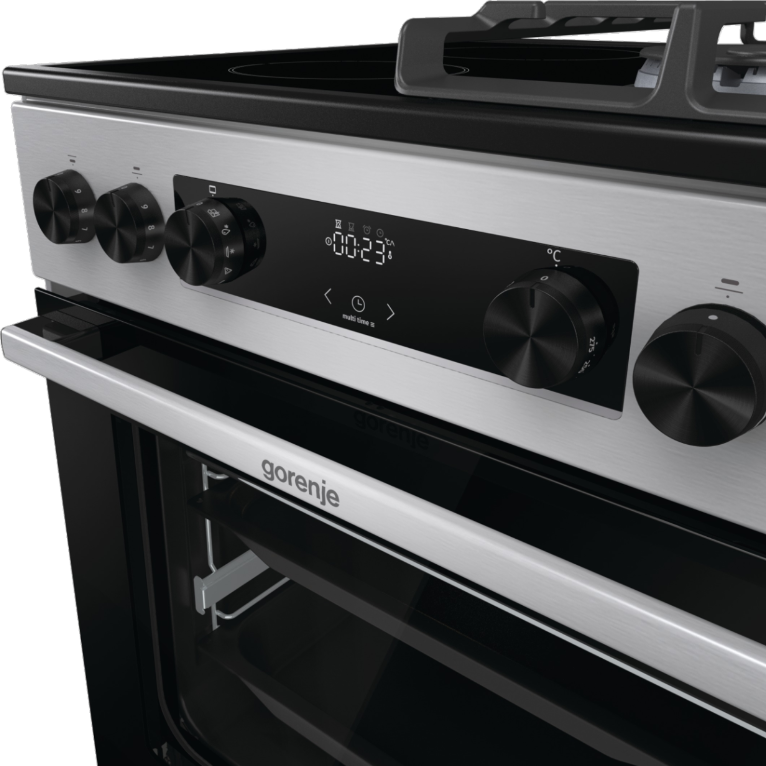 Gorenje GKC6C60XT donosi spoj praktičnosti plinskih i električnih grijača uz moderan inox dizajn. Na ploči se nalaze dvije električne i dvije plinske zone za kuhanje, dok SilverMatte unutrašnjost pećnice i GentleClose vrata osiguravaju dugotrajnost i udobno korištenje. Zahvaljujući MultiAir tehnologiji, pečenje je ravnomjerno na svim nivoima, a uz specijalni Pizza program (do 275°C) i FrozenBake opciju, priprema jela je brža i jednostavnija.