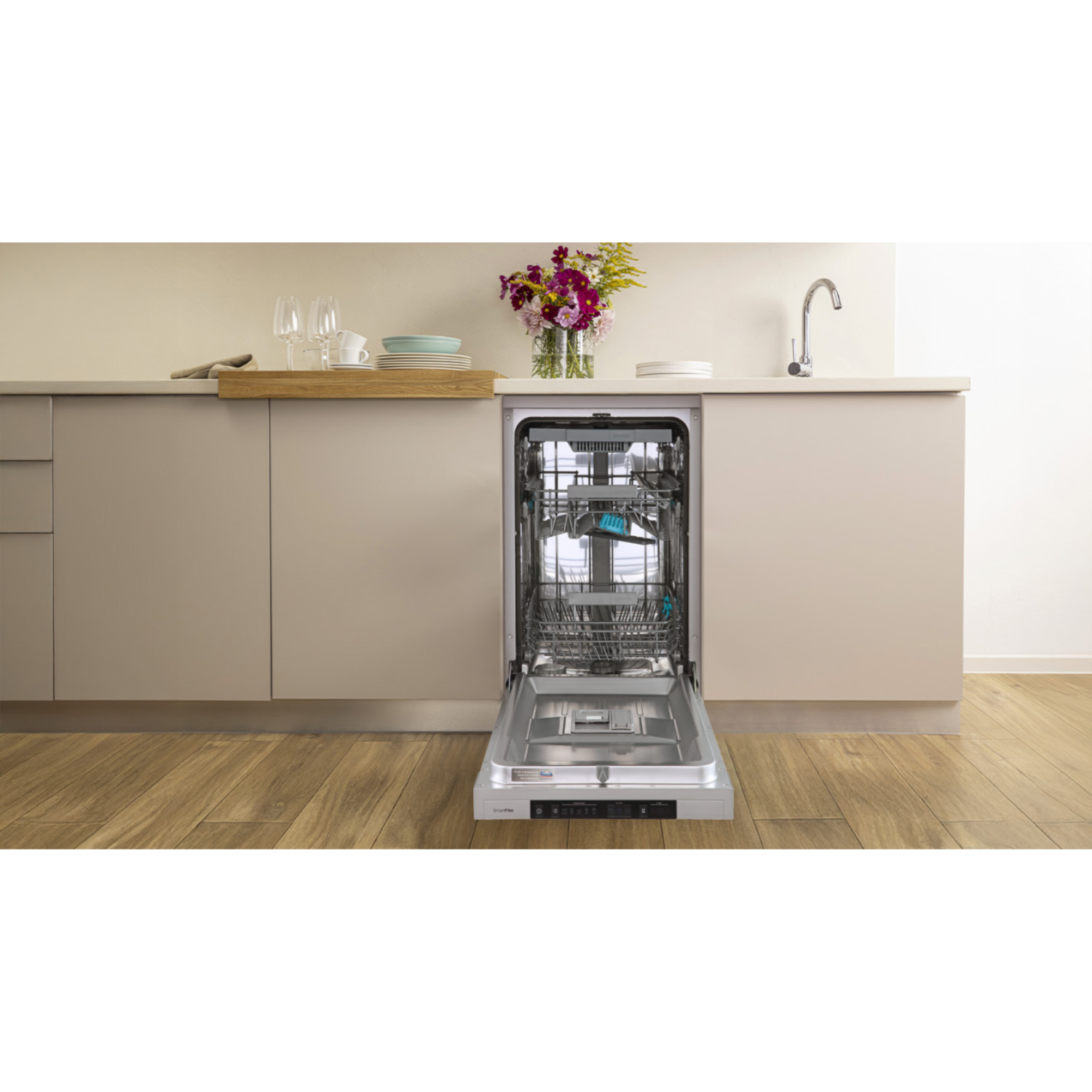 Ova moderna perilica posuđa širine 45 cm idealna je za domaćinstva koja žele uštedu prostora, energije i vremena. Nudi kapacitet od 11 setova uz iznimno tih rad od samo 45 dB, što je čini savršenim izborom i za otvorene dnevne prostore.