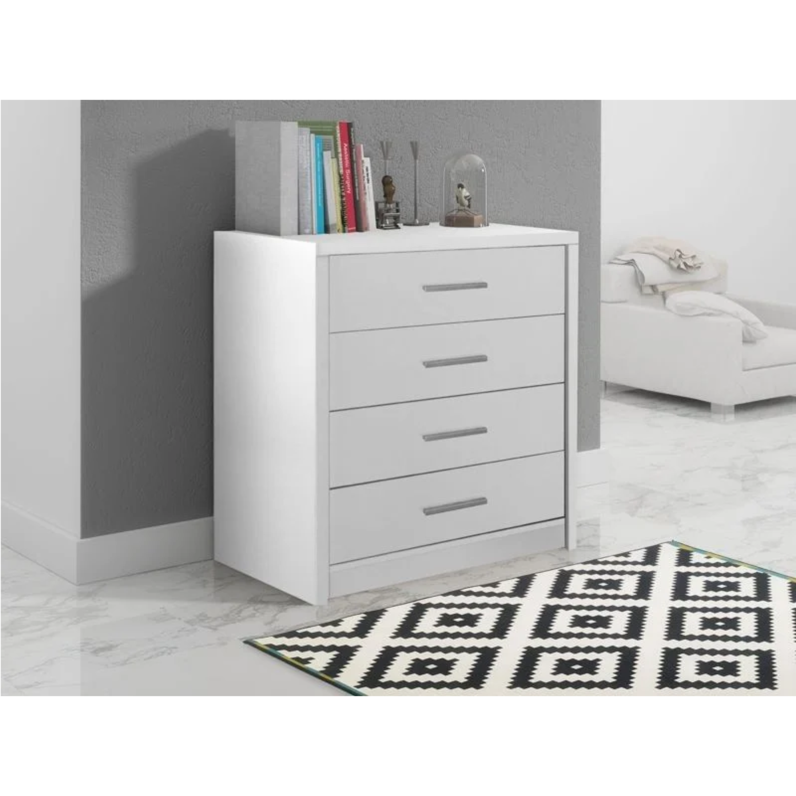 Komoda raspolaže s četiri prostrane ladice koje omogućavaju uredno i pregledno odlaganje odjeće, dokumenata ili raznih kućnih sitnica. Zahvaljujući svojim dimenzijama, pogodna je za spavaću sobu, studentsku sobu, dnevni boravak ili hodnik.