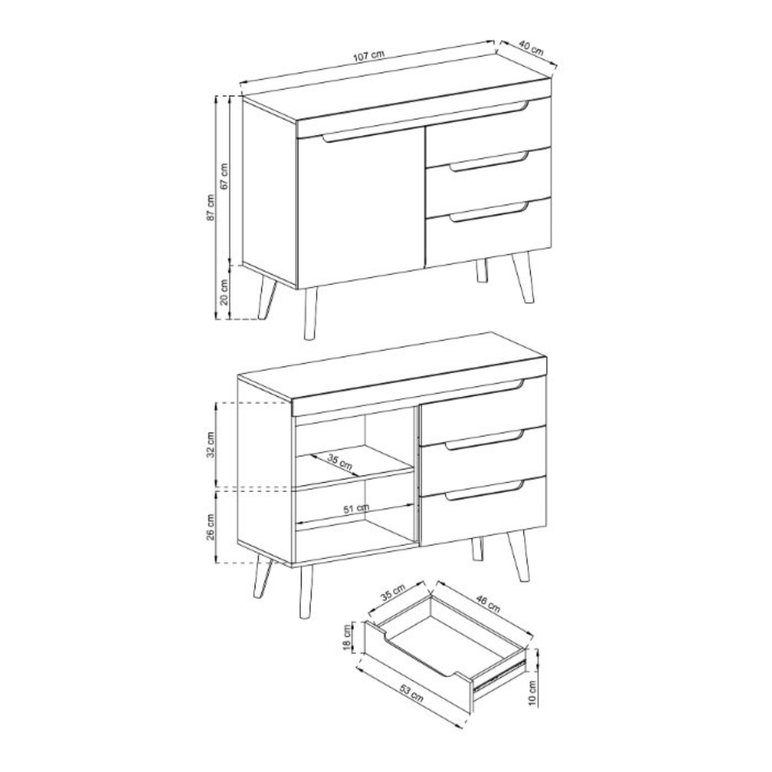 Nordi komoda NKSZ107 je praktičan i elegantan komad namještaja koji donosi toplinu i organizaciju u vaš dom. Sa dimenzijama 107 × 83 × 40 cm, nudi optimalan prostor za odlaganje odjeće, dekoracija i drugih sitnica, a svojim modernim dizajnom savršeno se uklapa u dnevni boravak, trpezariju ili hodnik.