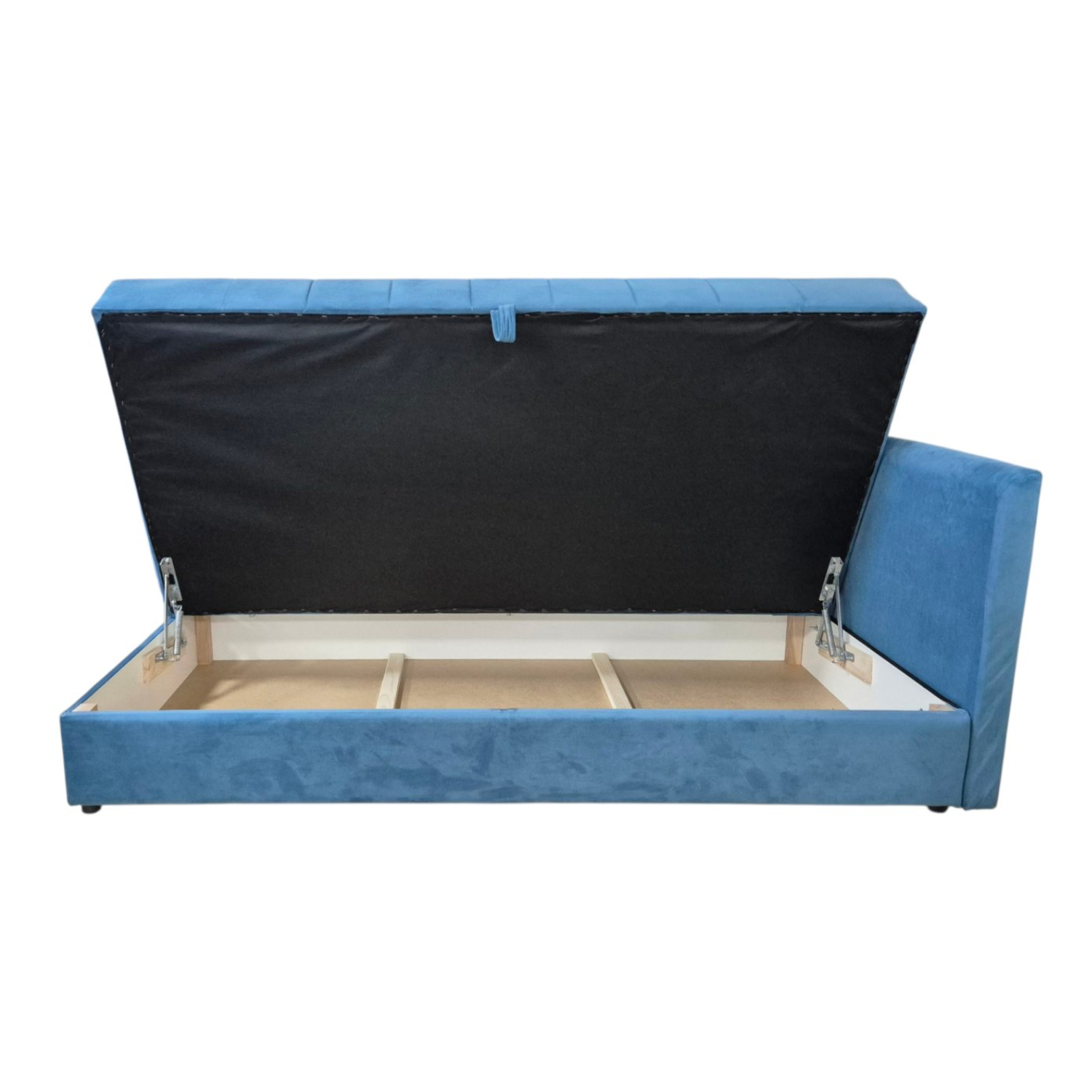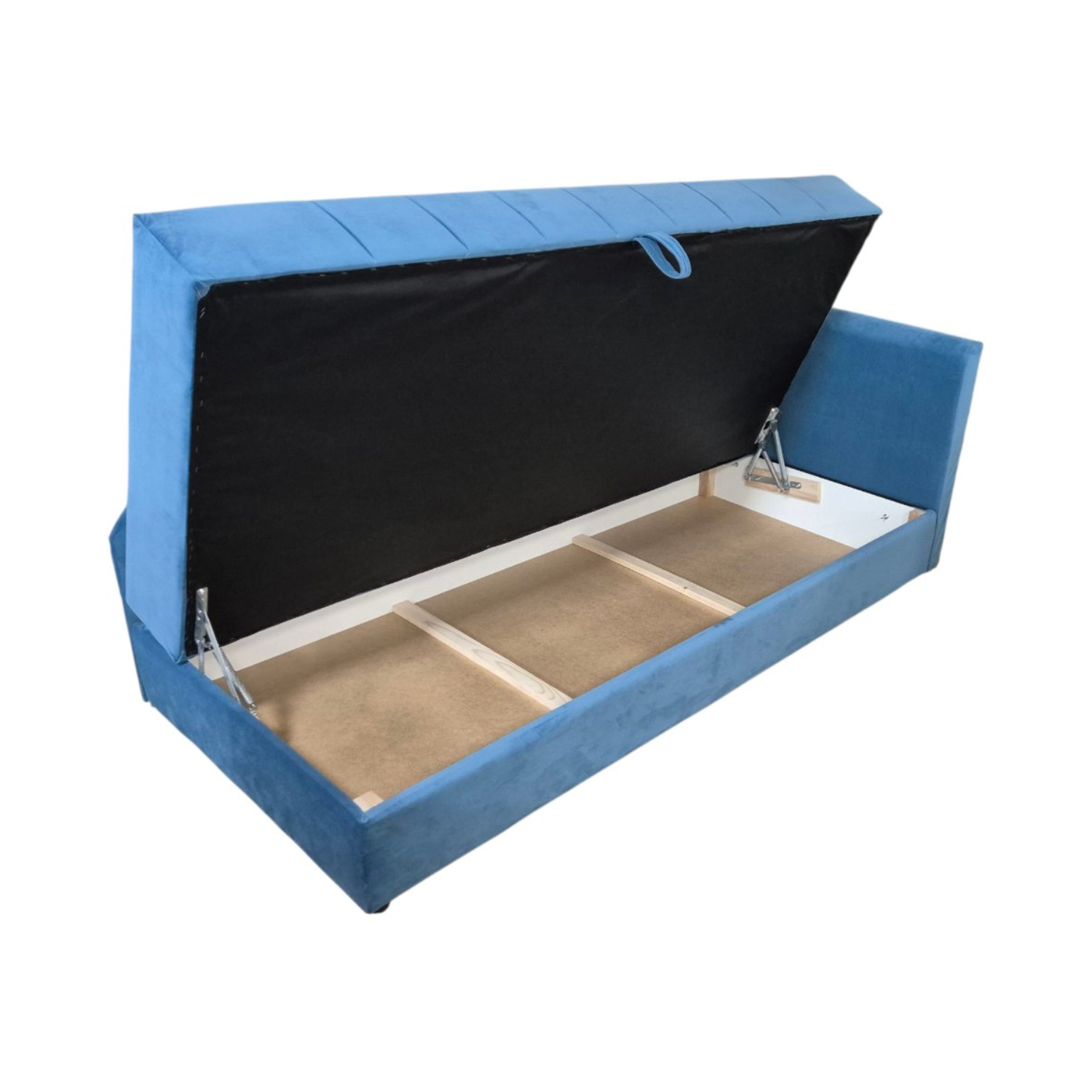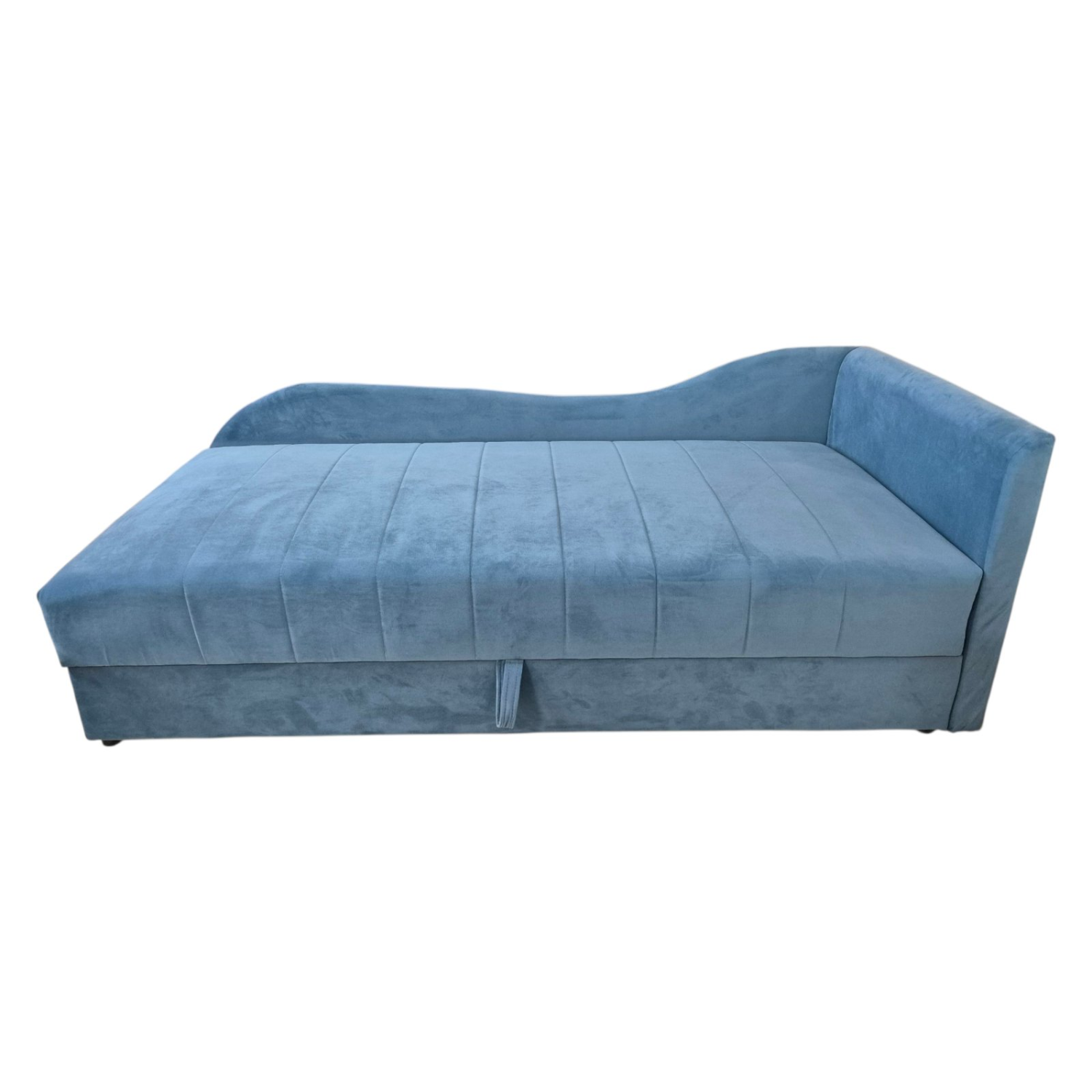 Ležaj Samac – Plavi spaja udobnost i funkcionalnost u jednom komadu namještaja, idealnom za manje prostore, spavaće ili dječije sobe. Njegova elegantna plava tkanina sa modernim linijama unosi svježinu i poseban karakter u enterijer, dok ukrasni jastuci dodatno naglašavaju njegov atraktivan izgled.