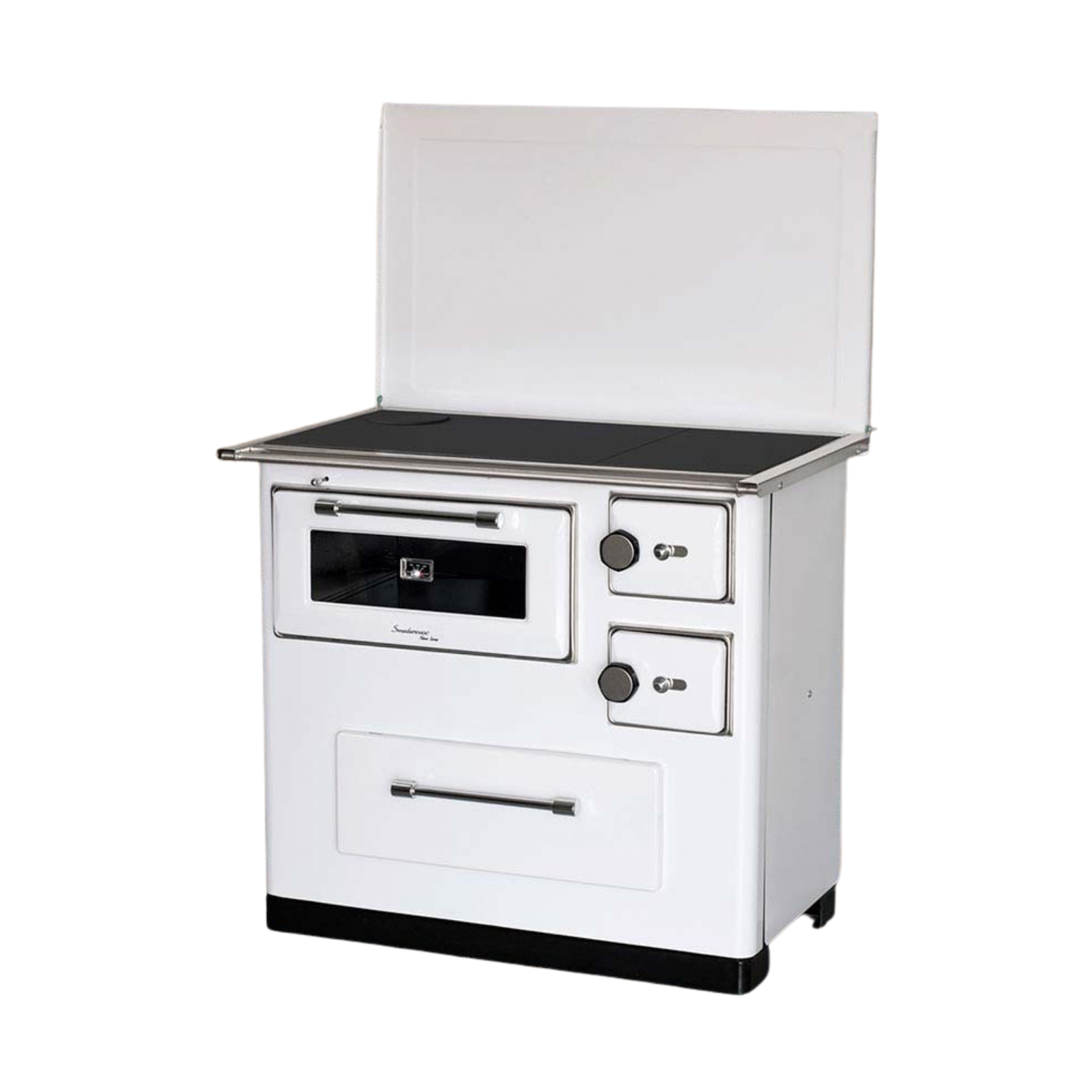 MBS Smederevac 10 SD 10 RS je savremeni šporet na drva koji kombinuje grijanje prostora i pripremu hrane u jednom uređaju. Dizajniran je za efikasno grijanje prostorija površine 40–45 m², dok velika kuhinjska površina dimenzija 94 × 64 cm omogućava pripremu više jela istovremeno.