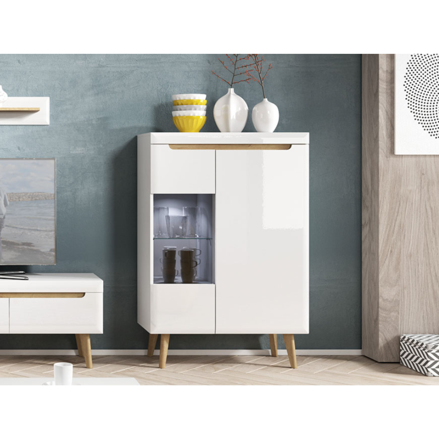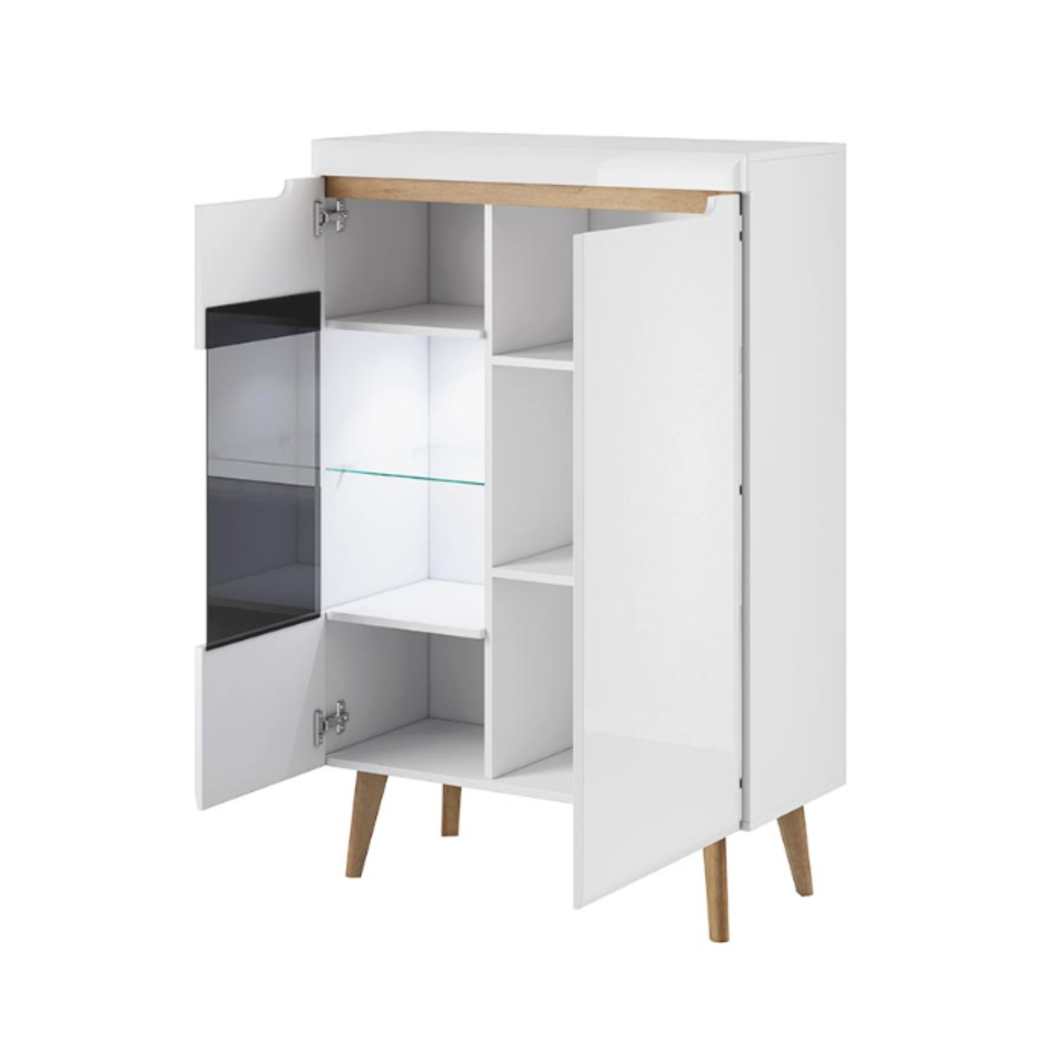 Nordi niska vitrina NWT90 savršeno spaja praktičnost i estetiku, čineći vaš prostor uređenim i sofisticiranim. Sa dimenzijama 90 × 134 × 40 cm, nudi dovoljno prostora za odlaganje stvari i elegantno izlaganje dekorativnih predmeta. Kombinacija bijele boje i hrastovog dekora unosi toplinu i lako se uklapa u svaki moderni enterijer.