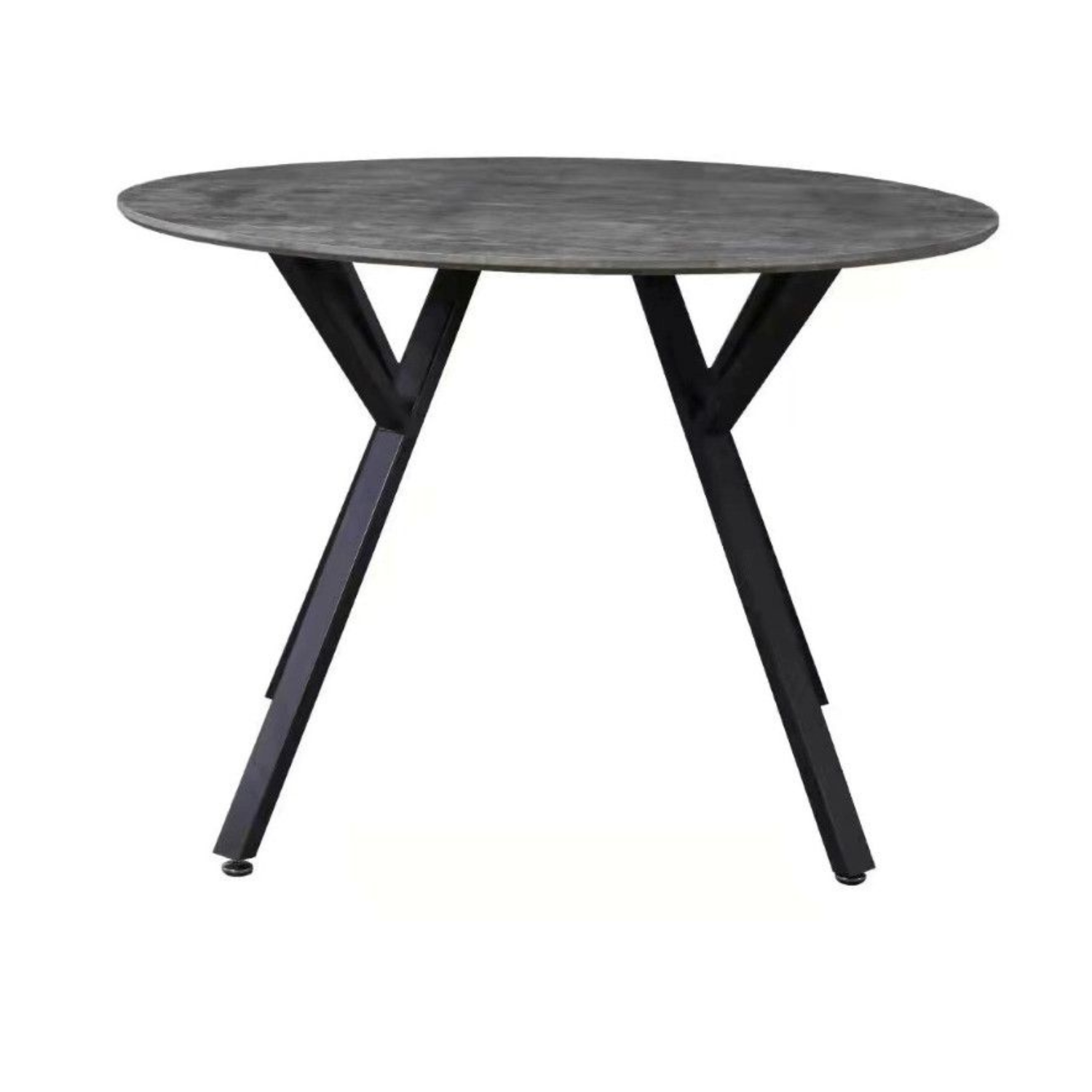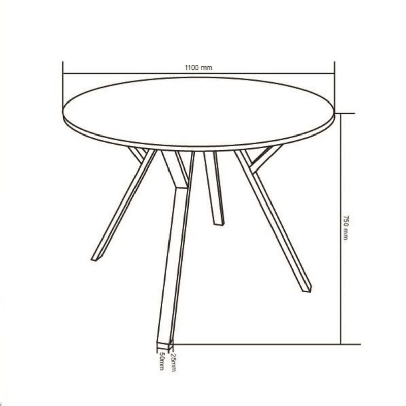 Ovaj okrugli sto dimenzija Ø110×75 cm idealan je za manje trpezarije ili kuhinjske prostore. Ploča debljine 1,8 cm izrađena je od kvalitetnog MDF materijala u cement sivoj boji, dok je postolje dinamičnog oblika izrađeno od metalnih cijevi prečnika 25×50 mm, plastificirano u crnu boju, što pruža moderan kontrast i čvrstoću.