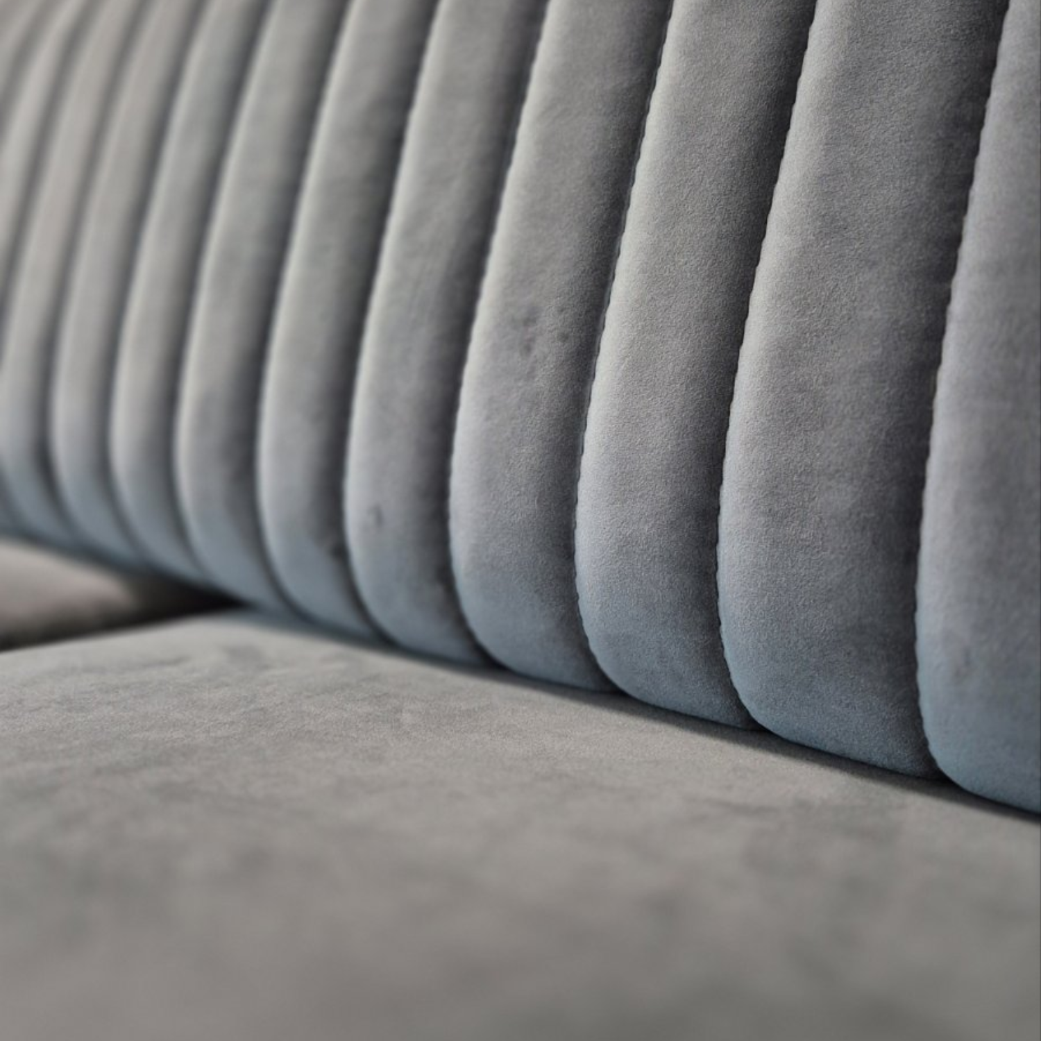Tapaciran je kvalitetnim platnom koje doprinosi udobnosti i estetici. Zahvaljujući metalnim nogicama, garnitura je dodatno stabilna i vizuelno atraktivna.