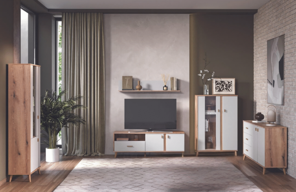 Porto TV komoda kombinuje moderni dizajn, kvalitetne materijale i praktičnost u jednom rješenju. Sa dimenzijama 154 × 40 × 51 cm, komoda pruža dovoljno prostora za smještaj televizora i prateće multimedijalne opreme, a prostrana fioka idealna je za daljinske upravljače, DVD-ove i druge sitnice.
