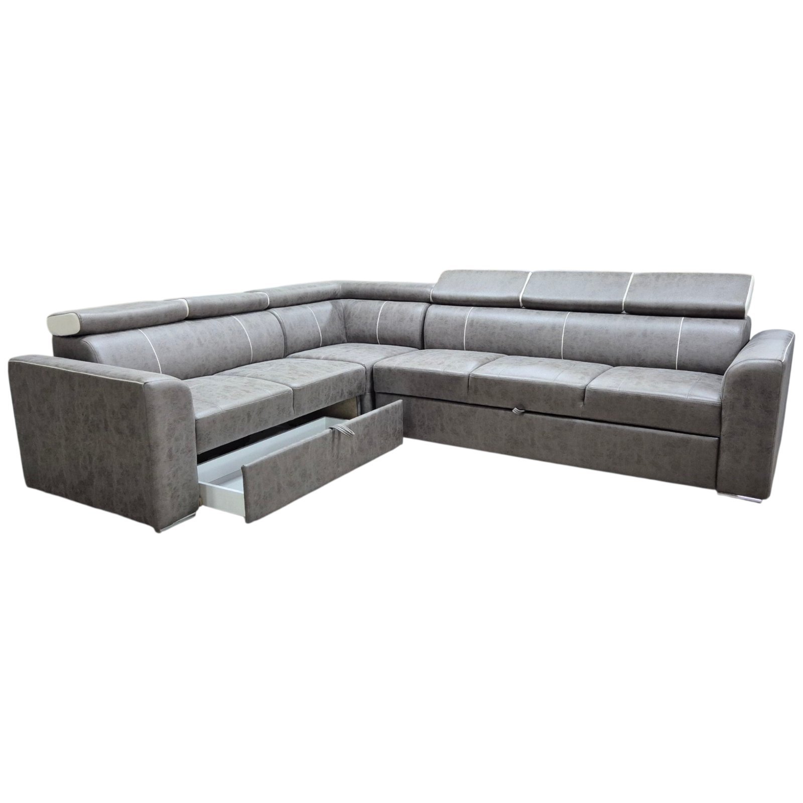 Trosjed s funkcijom razvlačenja omogućava brzo pretvaranje u ležaj, dok se u dvosjedu nalazi ladica za odlaganje, savršena za posteljinu i dodatne stvari.