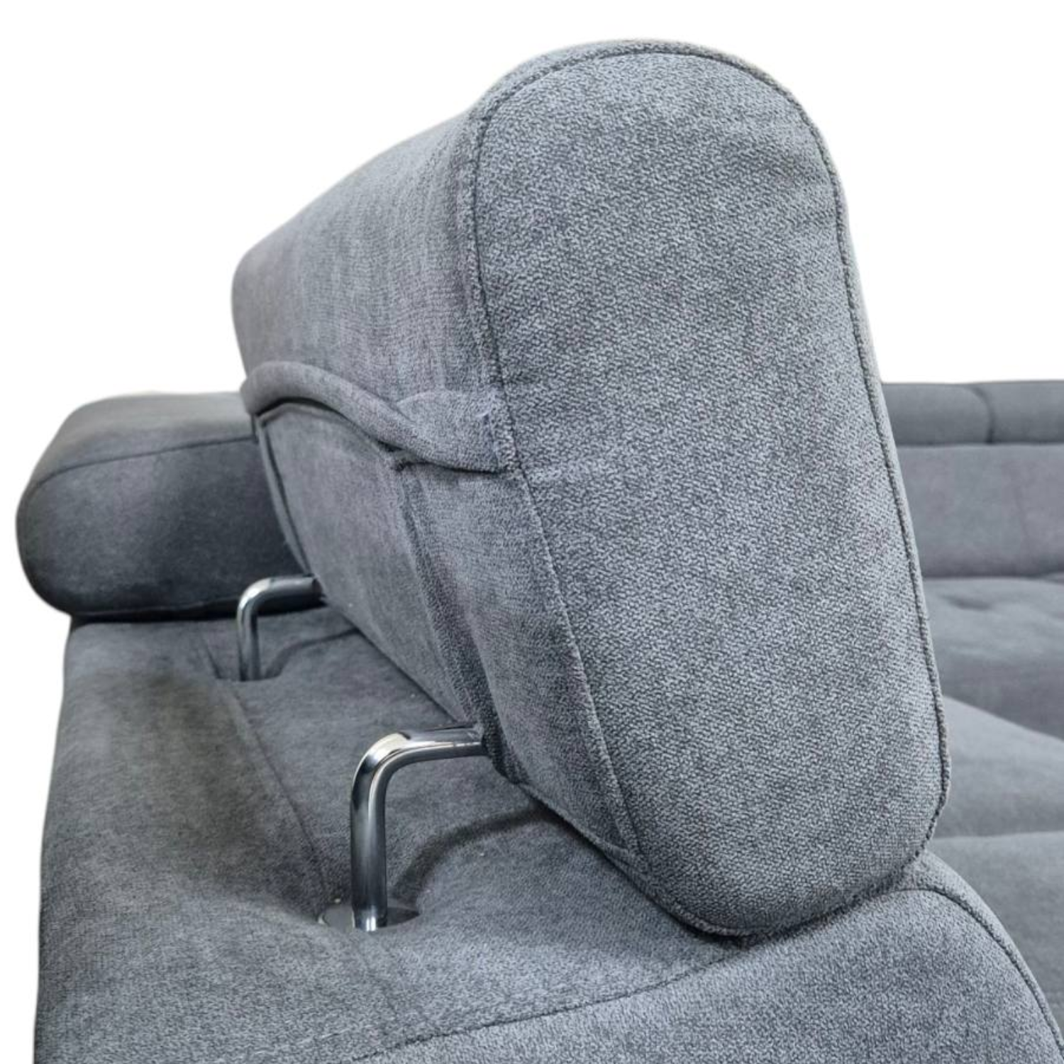 Završna obrada od kvalitetnog štofa i metalne krom noge daju garnituri savremen izgled. Praktičan raspored i dodatni tabure nude fleksibilnost u uređenju prostora.