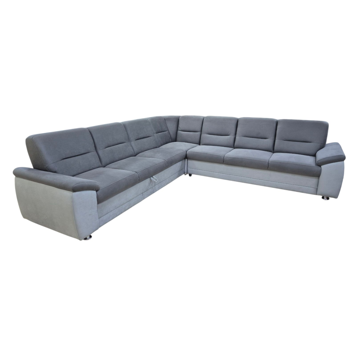 Napoli je simetrična ugaona garnitura idealna za veće prostore. Nudi kombinaciju trosjeda sa mehanizmom razvlačenja i fiksnog trosjeda, pružajući funkcionalnost i udobnost u elegantnom dizajnu. Dimenzija: 300×300 cm.